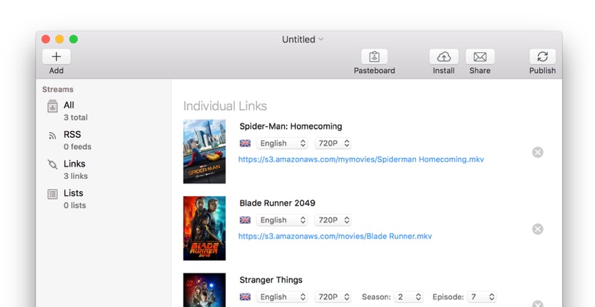 A stream is an ordered list of your movies and TV shows. These lists tell Squire where your video resides and which movie or episode it belongs to.