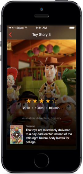 With Squire for iPad you can watch your movies and shows in your gorgeous iPad screen without losing the portability of your iPhone. The interface adapts to a bigger screen so you can quickly access all your content.